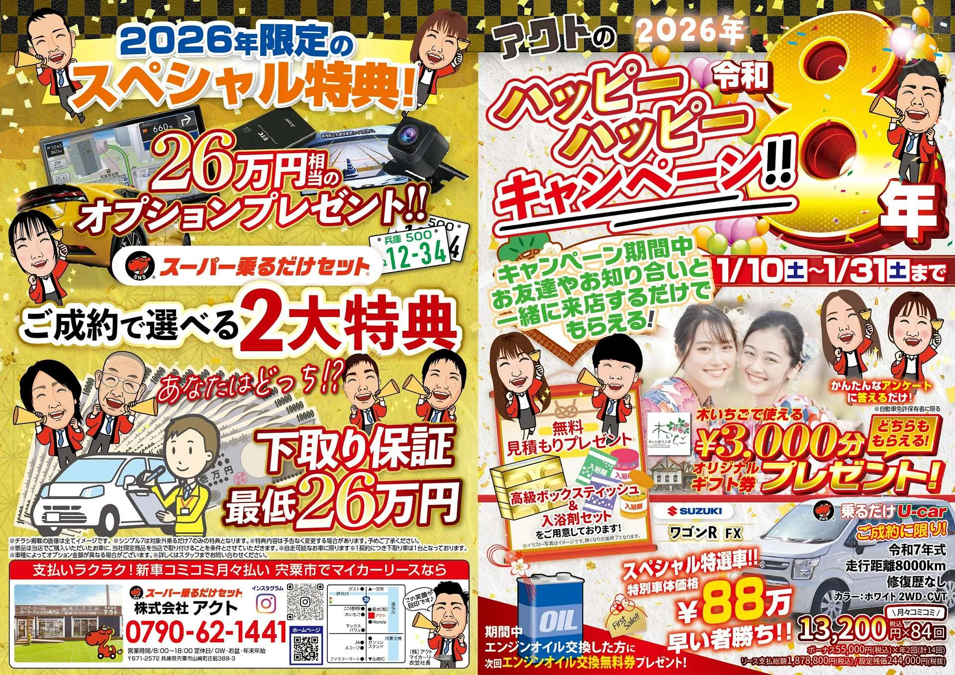 令和8年1月10日(土)~1月31日(土)までアクトのハッピーハッピーキャンペーンを開催いたします!!